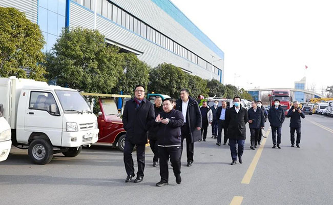 王志才總經理一行領導及負責人,不畏凜冬寒冷,先后步行參觀程力(曾都)汽車工業園、程力南郊汽車裝備制造工業園兩大基地。來賓們看產品、下車間、問工藝,無一不細致入微,調研考察工作扎實認真高效。