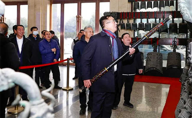 會議結束后,程阿羅總經理在迎賓大廳向王志才一行嘉賓講述了隨州古老文明的編鐘文化,雙方嘉賓集體合影留念。